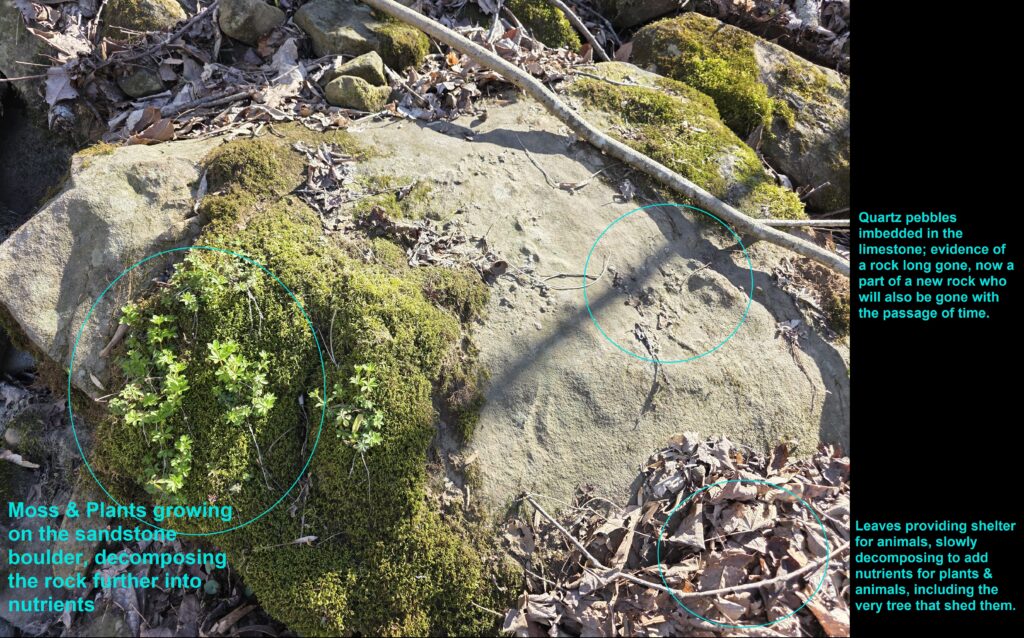 While I sat atop a sinkhole, listening to the waterfall and awaiting my caver friends to return from their descent on rope this was my view. Seems pretty ordinary, but scroll to next photo to see what I saw. Sitting still for a while, simply observing the world around you, can provide some deep insights. The shedding of deciduous leaves made me think about all we shed as well. Our own skin cells also become part of the cycle of the universe. At the Tennessee Cave Survey meeting earlier in the day one researched presented on microplastics and it probably got me oriented into thinking about all we become, and all we leave behind.Some rillenkarren on dissolved limestone. This feature is typical of karst landscapes. While what we often observe is the dissolution, the missing pieces which were once present, what we also need to keep in mind is it doesn’t simply disappear. The solution provides nutrients to the soil; it creates clay; underground it turns into speleothems, the gorgeous stalactites we all love to see. Death isn’t an end, it’s simply a transition into something new.